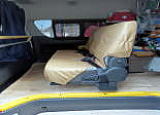 車内には、ストレッチャーが搭載してます。ハイエースの大型サイズとなってますので、ゆったりとした移動が出来ます。また、ストレッチャーには、布団・マットレスが敷いてあります。寝ながら映画などが見れるようになってます